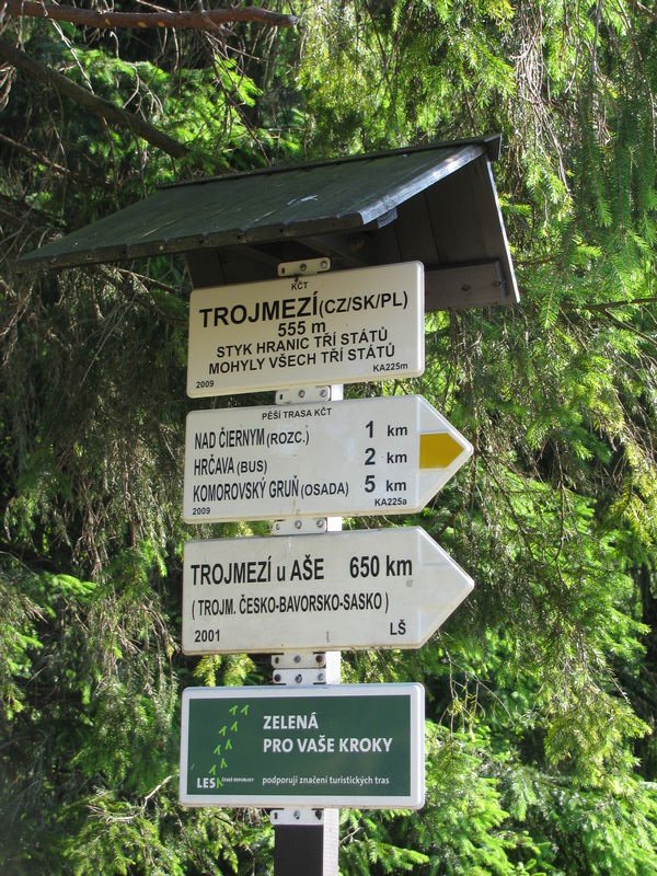 V dnešním článků vás zavedeme na velice zajímavé místo z pohledu geopolitického, stále se přitom budeme pohybovat v prostředí krásných Beskyd. Trojmezí v Beskydech je místem, kde se setkají hranice tří států – České republiky, Slovenska a Polska. Najdete jej v katastru obce Hrčava, která je někdy mylně považována za nejvýchodnější obec naší vlasti. Cesta na Hrčavu je trošku komplikovaná, ale cyklisty velice oblíbená. Pokud sem míříte z vnitrozemí, tak vězte, že musíte dojet až na samotnou hranici se Slovenskem, v Mostech u Jablunkova, a pak serpentinami a líbeznými lesy stoupáte až k cíli. Automobil doporučuji zanechat hned na začátku obce (vyhrazené parkoviště nečekejte). Poté se vydáte po žluté turistické značce až k Trojmezí, cesta je dlouhá 2 km a zabere vám přes půl hodinky. Celou dobu kráčíte po asfaltové komunikaci a nabízí se vám výhled, vyjma kouzelné krajiny, na slovenskou obec Čierné pri Čadci a polskou obec Jaworzynka. Na Trojmezí můžete využít jeden z altánů jako odpočívadlo. Můžete se odsud vydat po jedné z tras na návštěvu jak Polska tak Slovenska.