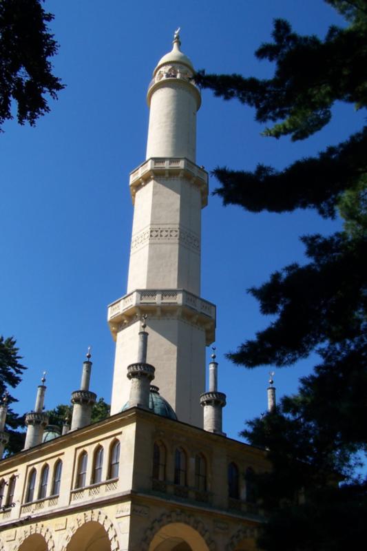 Samotný lednický zámek jsme nenavštívili, prošli jsme však část zámecké zahrady, a především přilehlý park s rybníkem a kanály, který je snad působivější než sama zahrada. Dominantou parku je jediný minaret na našem území, za pozornost stojí i vítězný oblouk a zajímavé torzo akvaduktu. Pěkný pohled je také na kanály z dřevěných mostků. Jelikož jde o stojatou vodu, doprovázejí jej i za slunného odpoledne dotěrní komáři, takže i sem je radno vyrazit s repelentem.