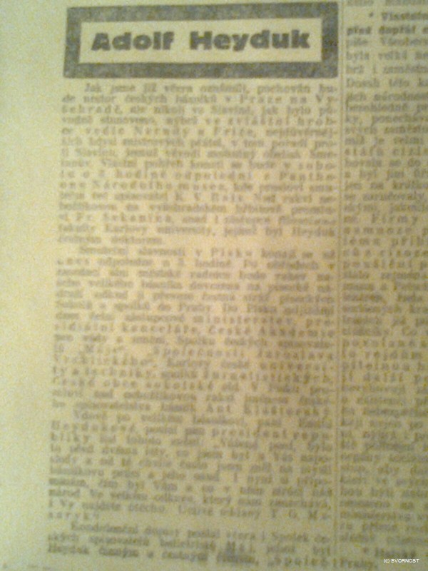 heyduk-kresba150Ve středu 6. února 2013 uplynulo 90 let od úmrtí pootavského slavíka Adolfa Heyduka. Zemřel ve věku nedožitých 88 let ve svém domě v Písku. O čtyři dny později roku 1923 se Písek a celé Československo zahalilo do smutečního hávu, neboť se konal velkolepý pohřeb. Především z důvodu velikosti tohoto básníka. Pomineme-li fakt, že byl nejstarším českým básníkem, byl hlavně posledním žijícím Májovcem, který přispěl do almanachu Máj (1858) a tím se zařadil mezi velikány české kultury a stál tak po boku takových osobností jako byla Božena Němcová, Karel Jaromír Erben či Jan Neruda.